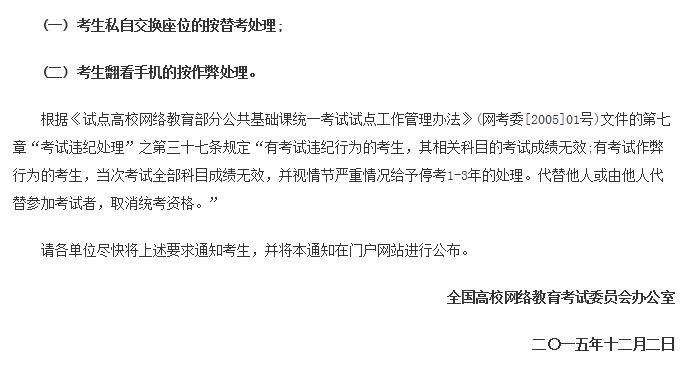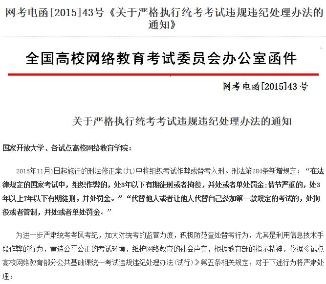 网考电函[2015]43号《关于严格执行统考考试违规违纪处理办法的通知》