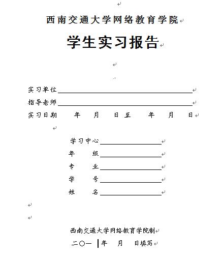 为使学生将所学理论知识与实际能够密切联系,巩固和提高所学的基础理论和专业知识,提高解决问题的能力,根据西南交通大学网络教育学院教学计划,本科层次各专业学生必须进行毕业实习,撰写实习报告,为保证实习报告的质量,特制定实习报告要求:实习报告撰写要求
